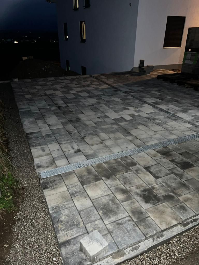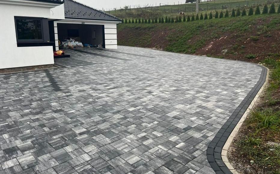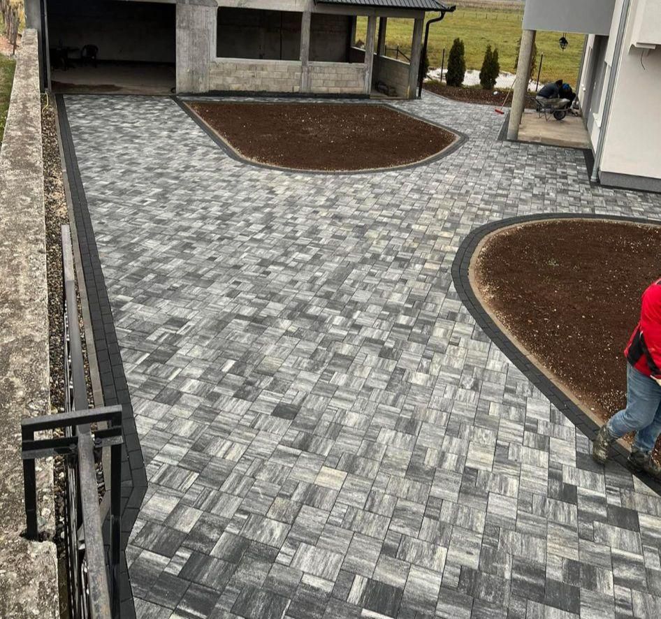 Izvodimo tlakovanje dvorišta, staza i prilaza, postavljanje rubnjaka, opločnika i betonskih ploča te završno uređenje vanjskih površina.