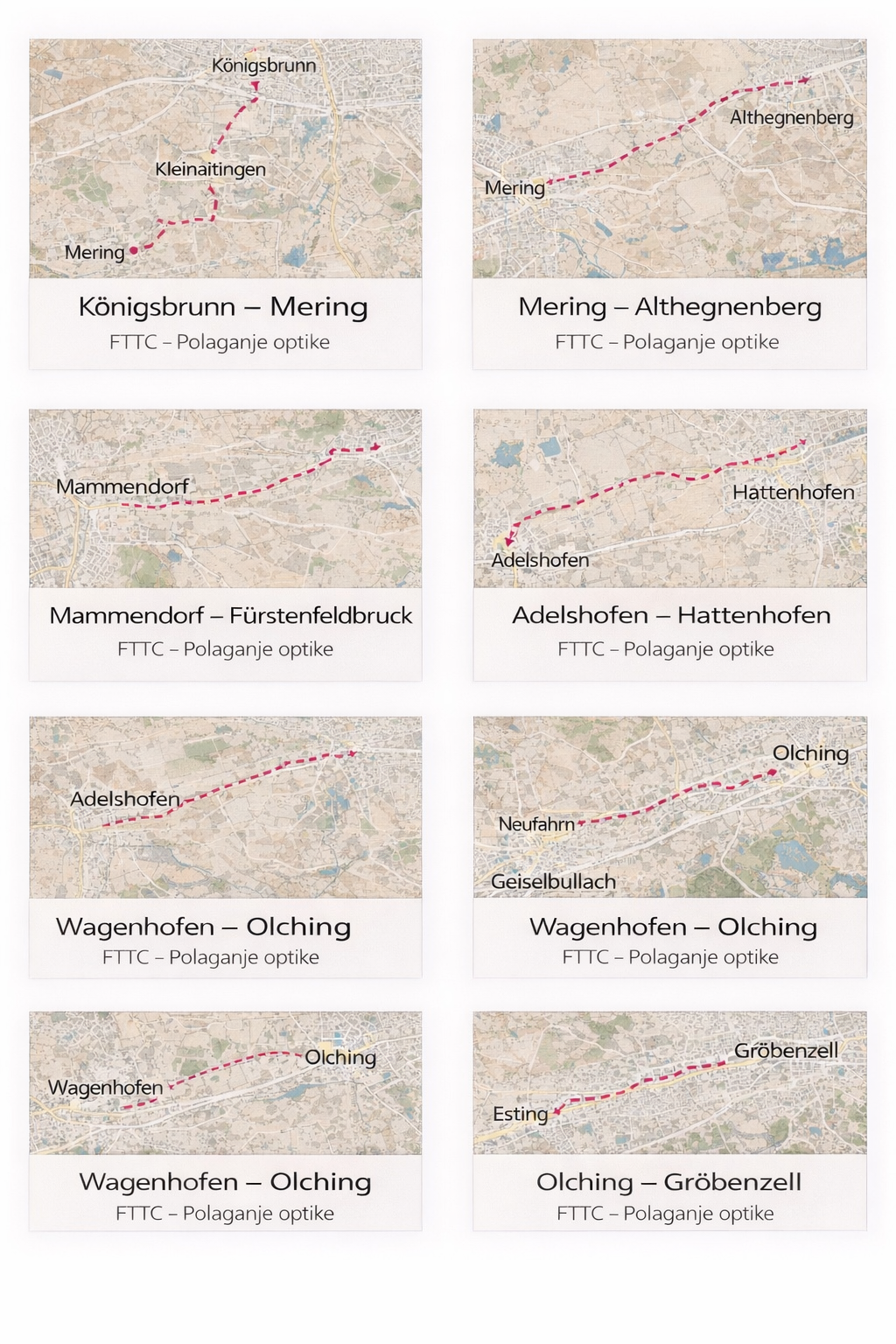 Izvodimo telekomunikacijsku niskogradnju za FTTx mreže, uključujući iskope, pripremu trase, polaganje zaštitnih cijevi, ugradnju kabelske infrastrukture, izradu kabelskih trasa, ugradnju zdenaca i šahtova te završne građevinske radove za potrebe teleoperatora