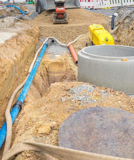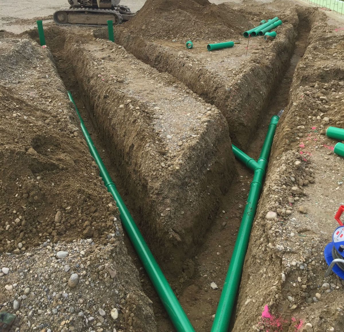 Izvodimo sustave odvodnje otpadnih i oborinskih voda, temeljnu kanalizaciju te priključke objekata na javnu kanalizacijsku mrežu.